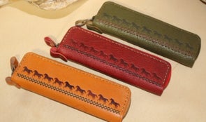 馬9頭を革に焼き印を捺して「うまくいく」という縁起の良いデザインのペンケース
