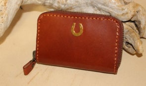 ゴールドの蹄鉄金具付きラウンドファスナーコインケース、カードケースです。