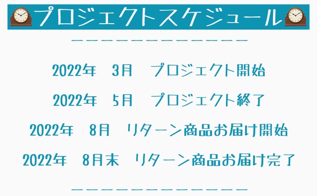 私達は常にもっと素敵なデザインを皆様に届ける為に日々試行錯誤している為、プロジェクト中にもデザインの一部が変更される場合がございます。 また、商品ページの画像も光の当たり加減などによっては実際の色と異なって見える場合もございます。 プロジェクトのスケジュールは現時点での予定でございますのでやむを得ない事情によってはお届けに遅れが出てしまう場合がございます。フィギアやステッカーなどはオルタとオルタの友人の手作りな為お時間をいただく場合がございます。楽しみにお待ち頂けたら幸いです。 ※本プロジェクトはAll or Nothing方式で実施いたします。目標金額に満たない場合、計画の実行及びリターンのお届けはなく、返金となりますのでご了承ください。 ※開発中の製品につきましては、デザイン・仕様が一部変更になる可能性もございます。 ※本プロジェクトを通して想定を上回る皆様から応援購入頂き、現在進めている環境から量産体制を更に整えることができた場合、正規販売価格が販売予定価格より下がる可能性もございます。 ※原則として、配送遅延に伴う応援購入のキャンセルはできませんが、リターン配送予定月から1カ月を超えた場合には、希望者に限りキャンセルにて対応させていただきます。 最後に、本プロジェクトを成功させ、皆様にパワーを届けるべくチーム一同心を込めて対応してゆきます。応援よろしくお願い致します。