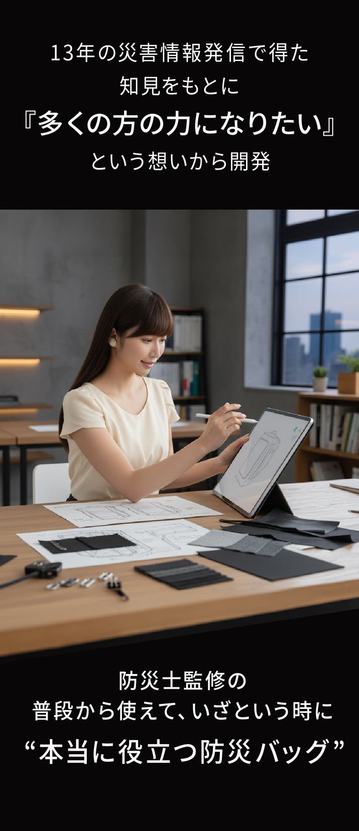 当社はこれまで「おたすけ簡易トイレ」などを通じて被災地に貢献してきましたが、 次は“電源と通信”というライフラインそのものを支えるプロダクトを作りたいと考えました。