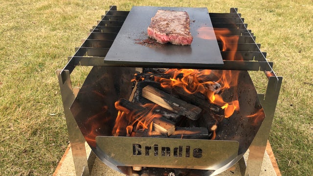 厚さ6mmの鉄板(別売り)を置いて豪快にステーキ。鉄板の蓄熱性は折り紙つき。表面を焼いたら一度アルミホイルに包み5~10分保温放置し2度焼きするのがおススメです。ひと手間加えると美味しさが変わります。https://brindlecamp.thebase.in/