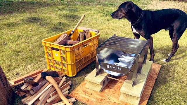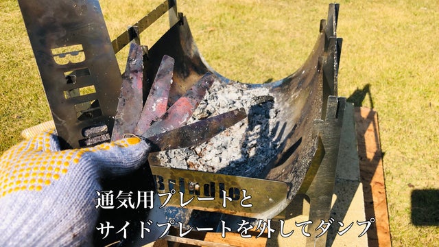 灰の処理も簡単です。ブリンドルのロゴが入ったプレートと、通気用の4枚のプレートを取り外して灰を捨てるだけです。全て板状部品ですのでお手入れも簡単です。