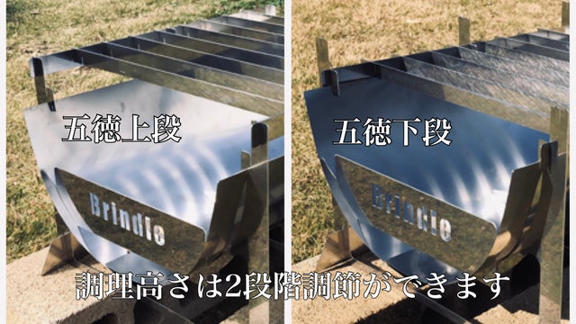 調理に関しては、五徳が10本付属しておりますので器具の大きさに合わせてお好きなスペースで調理をして頂けます。また2段階で高さ調節が可能です。薪や炭などの燃料の量や火力に応じて高さをお選び下さい。