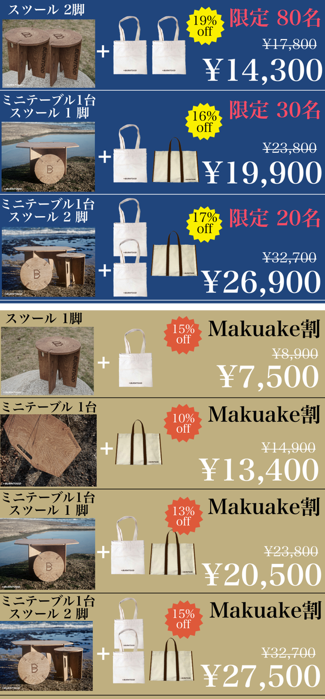 「Makuake(マクアケ)」は、実行者の想いを応援購入によって実現するアタラシイものやサービスのプラットフォームです。このページは、 プロダクトカテゴリの 「組立てキャンプ家具 木製スツール&ミニテーブル「アウトドアファニチャー」」プロジェクト詳細ページです。