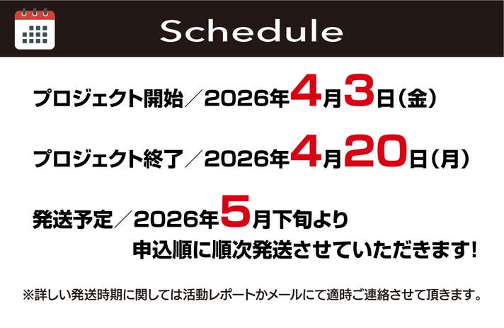 プロジェクト終了後お申し込み順に、順次に発送させていただきます。