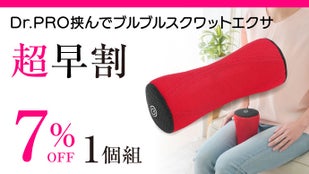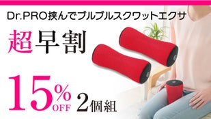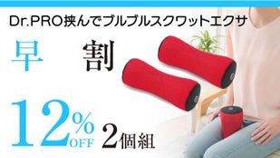 より多くの方にお得に「Dr.PRO挟んでブルブルスクワットエクサ」をご使用いただきたく、先着順ではございますが【超早割】もご用意させていただきました!割引率は最大20%OFF!(Dr.PRO挟んでブルブルスクワットエクサとスクワットスパッツのセット)この機会に是非お求めください。