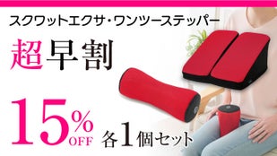 今回のみ特別、以前プロジェクトを実施した人気商品「座ってあんしんワンツーステッパー」と新商品の「Dr.PRO挟んでブルブルスクワットエクサ」のセットを300セット限定でご用意!割引率は15%OFFとなっております♪
