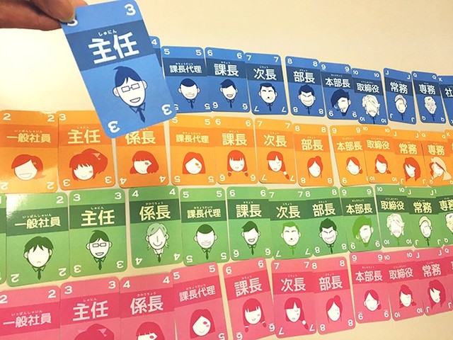 トランプの7ならべの要領で、遊びながら順番に並べていくことで、役職の名前、序列を覚えることができます。