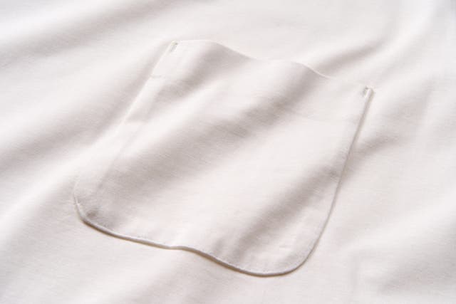 通常ワイシャツに施される、Tシャツの後ろ襟が立つ立体裁断により、首周りの皮膚を直接ジャケットなどアウターの襟に触れさせず、アウターの皮脂汚れを防止します。