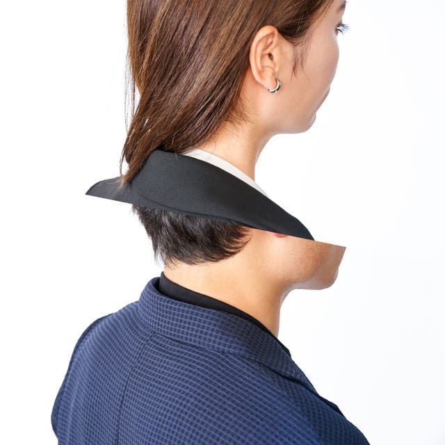 独自の縫製技術により、首元の生地が経年使用によって伸びるリスクを低減させ、ビジネスシーン(対面、web)でだらしなく映らないように配慮しております。