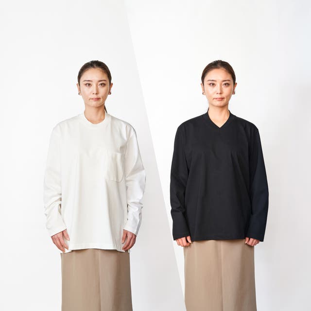 ※長袖Tシャツ 2型(丸ネック、Vネック)2色展開