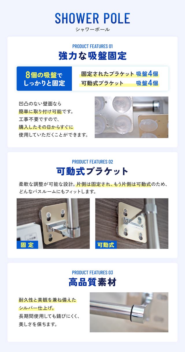 「簡単取り付け、高性能なシャワーポールで快適なシャワータイムを」