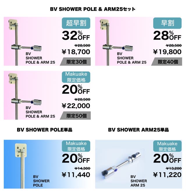 [限定価格]BV SHOWER POLE、BV SHOWER ARM25セット