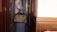 ▲ホテルでもわずかなスペースがあれば荷物の出し入れが可能です。荷物を1つにまとめてスマートに!スーツケースのように広げる必要もありません。