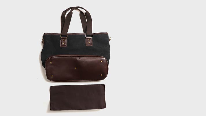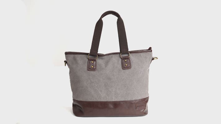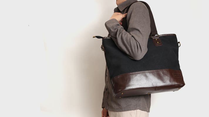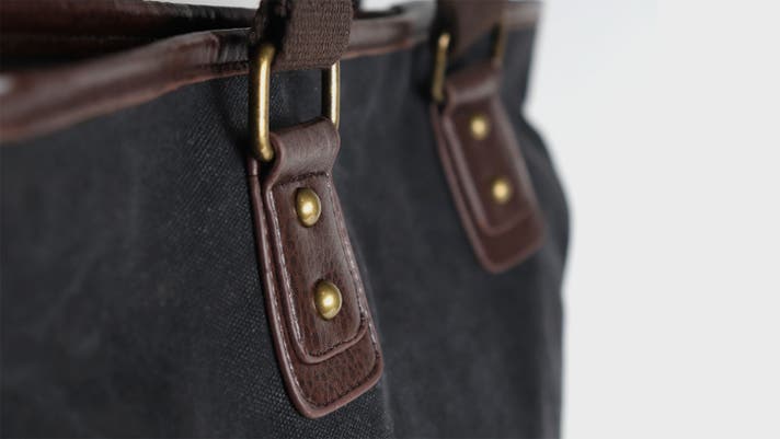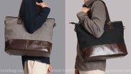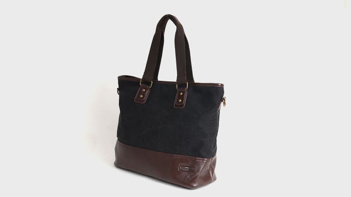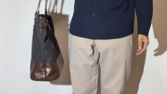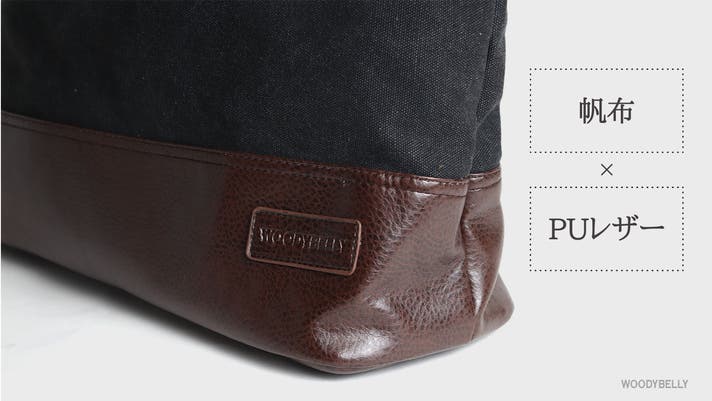 ▲柔らかい印象の帆布生地×高級感のあるPUレザーの異素材使い