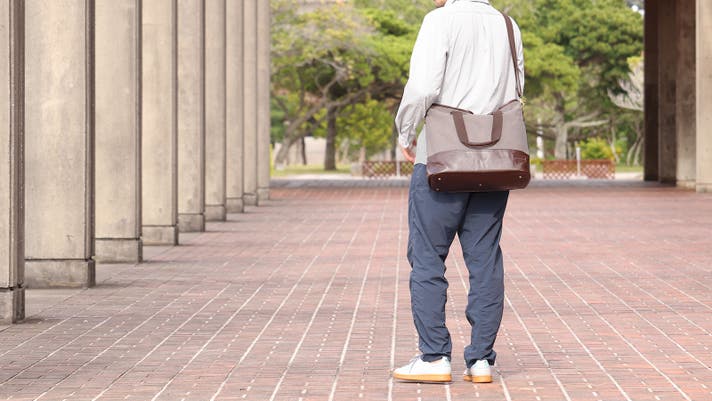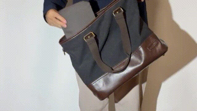 ビジネスバッグはたくさん入れると膨らんでカッコ悪かったけど、丈夫で柔らかい帆布生地なので、荷物が少なくても、たっぷり入れても形が崩れにくく見た目もスッキリ