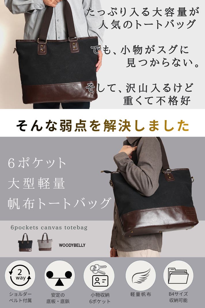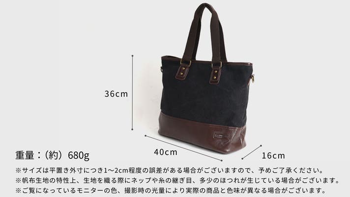 - 仕事も普段も一泊旅行も、たっぷり入る大容量!軽くて丈夫でガンガン使える帆布トートバッグ