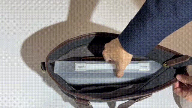 ▲指1本で持てるほど軽量です。バッグが重いと移動だけで大変。毎日使って欲しいから軽さを追求しました。