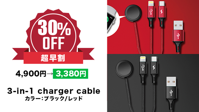 【超早割30%オフ】<3-in-1 charger cable> 先着30名限定