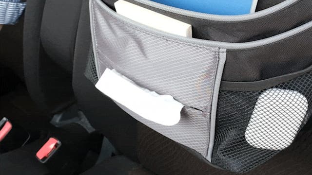 ヘッドレストにつけるだけで、車内には収納スペースが完成!