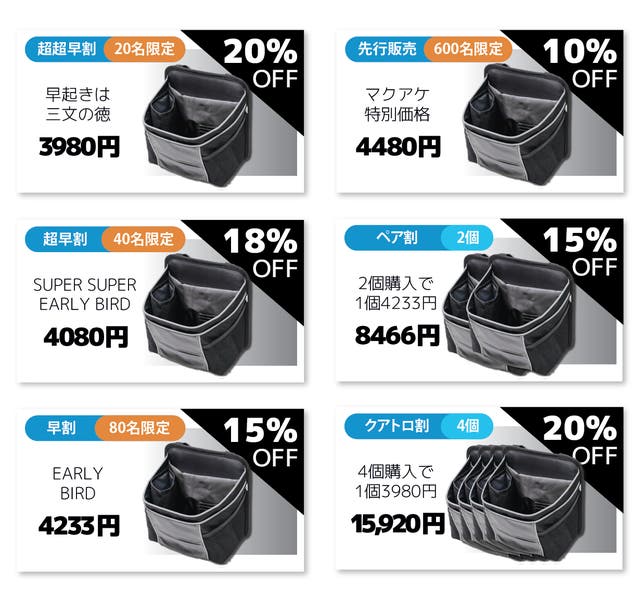 ※割引率は、税込予定販売価格9,960円(消費税・送料込)に対するものです。