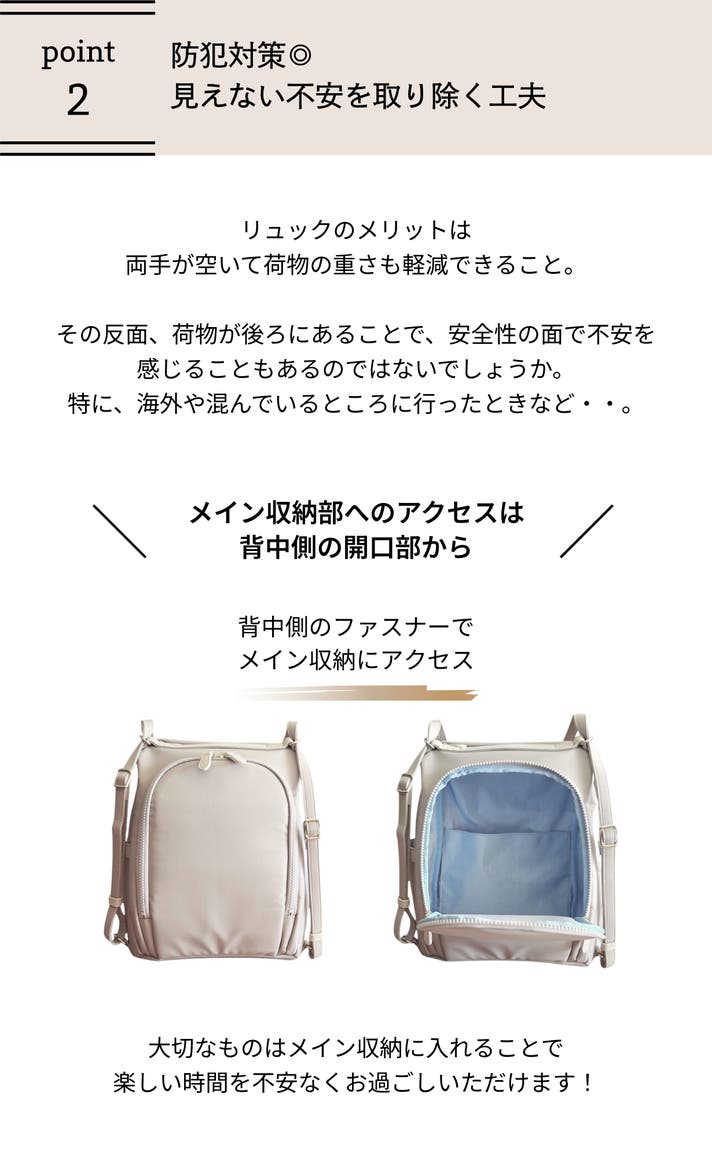 - 【収納】メイン収納は背面からのみアクセスできる仕様。海外旅行にも安心な防犯面にも配慮した設計!