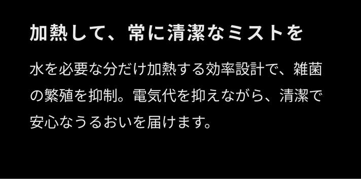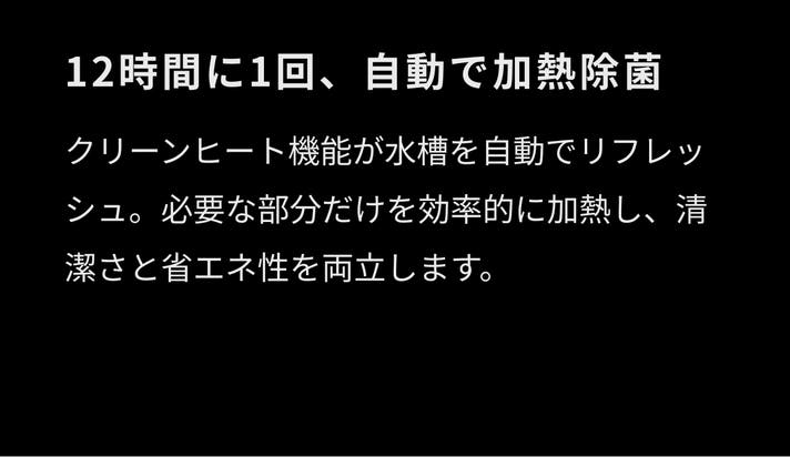 - 【加熱除菌※1】水槽内を自動リフレッシュし、清潔なミストで満たす安心設計