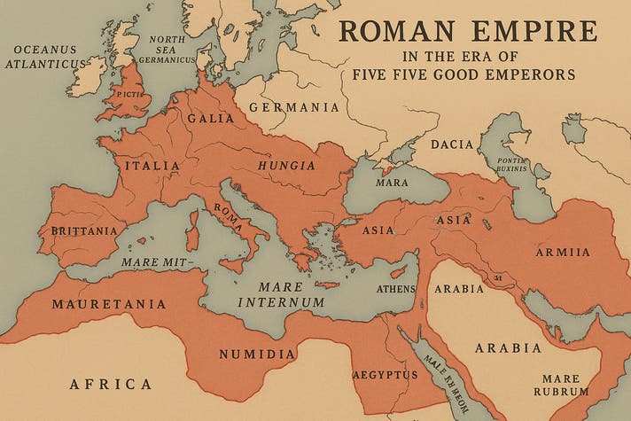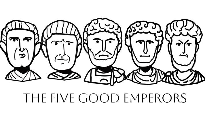 古代ローマ帝国の「五人の賢明な皇帝」のことで、96年から180年までの間にローマを統治した皇帝たちを指します。彼らの時代は、ローマ帝国の最盛期の一つとされ、「パクス・ロマーナ(ローマの平和)」が続いた安定した時代でした。この時代のローマは安定し、繁栄していたため、歴史家エドワード・ギボンは「人類史上最も幸福な時代の一つ」と評価しています。