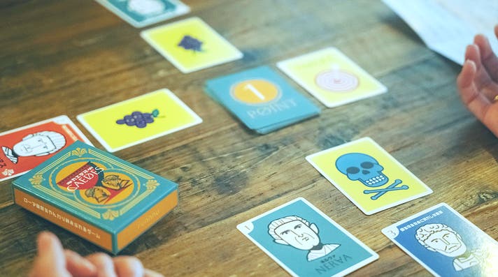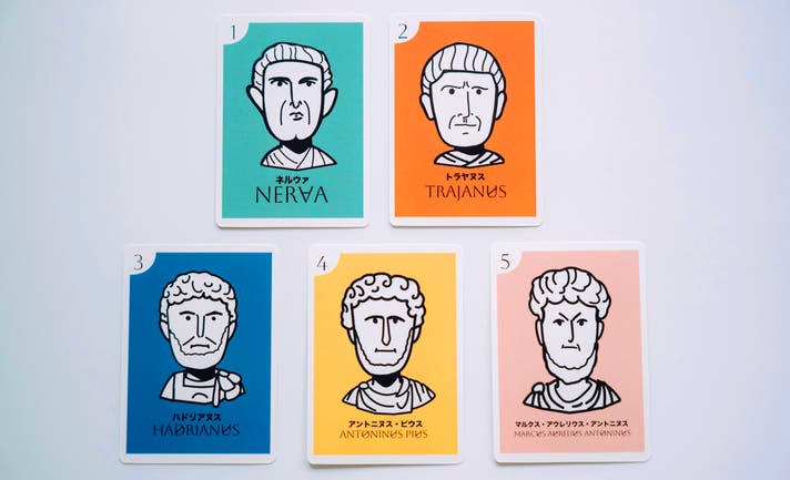 遊びながらローマの五賢帝が学べる、心理戦カードゲーム『カエデス』が登場です!