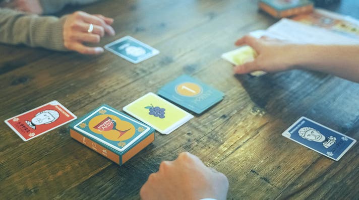 A: 1ゲーム 約15~20分 なので、ワークショップなどのアイスブレイクにもピッタリです。人数も8人までお楽しみ頂けるので、会社の宴会などでもご使用できるかと思います。内容物はカードのみなので、片付けも比較的容易だと思います。
