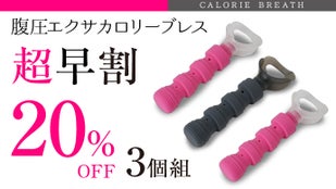 お一人でも多くの方にお得に「腹式エクサカロリーブレス」をご使用頂きたく、先着順ではございますが【超早割】もご用意させていただきました!割引率は3個組で最大で20%OFF!この機会に是非お求めください。