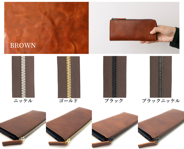 ファスナーには品位・風格ともファスナーの貴婦人といわれるYKKの“EXCELLA”を採用。金具部分の色は4色(ニッケル・ゴールド・ブラック・ブラックニッケル)をご用意致しました。