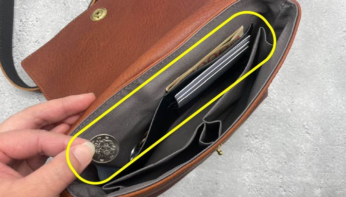 ①②③お財布いらずのマネーポケットは、小さいバッグを持つためにいちいち財布を入れ替えたり、購入しなければならないという手間を省きます。