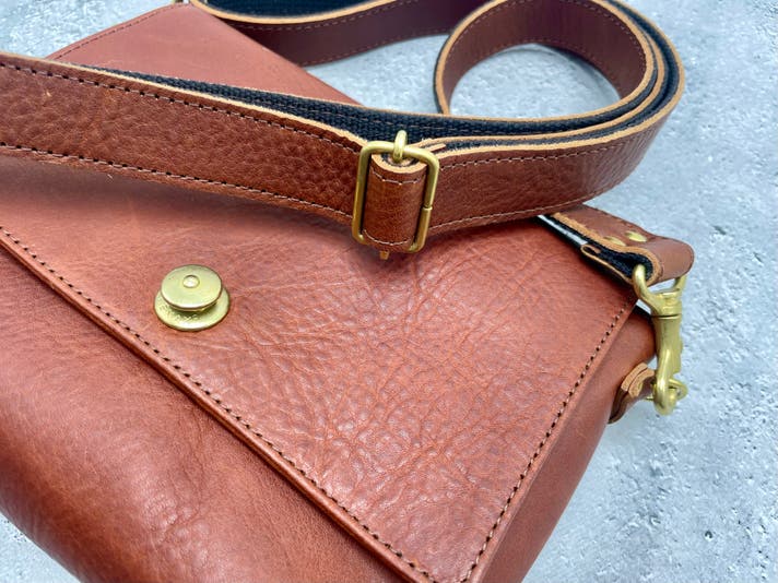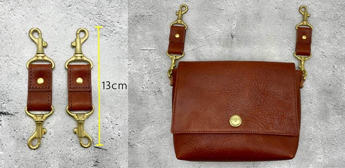 金具(ホック、カシメ、ナスカンなど)には革と共に経年変化(エイジング)する真鍮を採用。