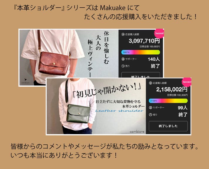 「Makuake(マクアケ)」は、実行者の想いを応援購入によって実現するアタラシイものやサービスのプラットフォームです。このページは、 ファッションカテゴリの 「これからの人生を共に。長く愛して深まる色艶で休日を彩る『大人の本革ショルダー』」プロジェクト詳細ページです。