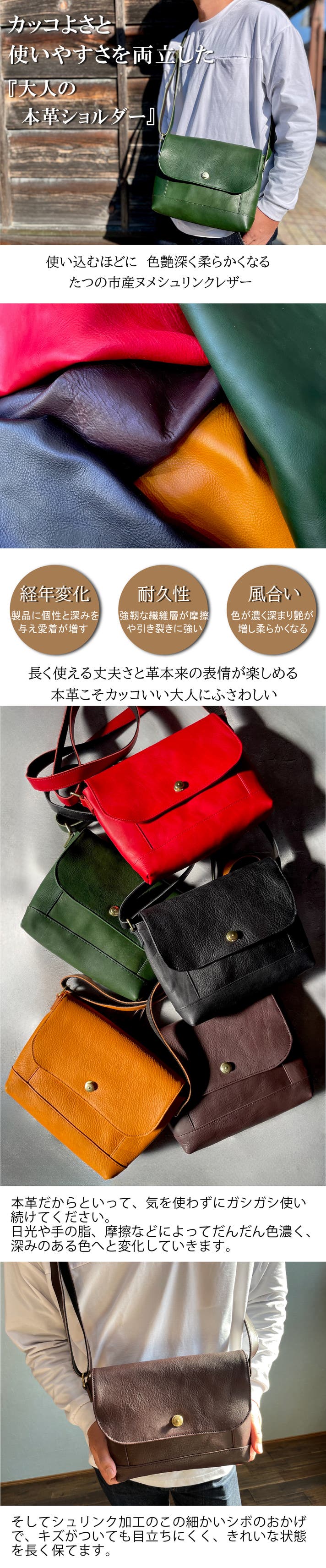 - 日本の革の一大産地『兵庫県たつの市』の革職人から生まれたメイドインジャパンのショルダーバッグ