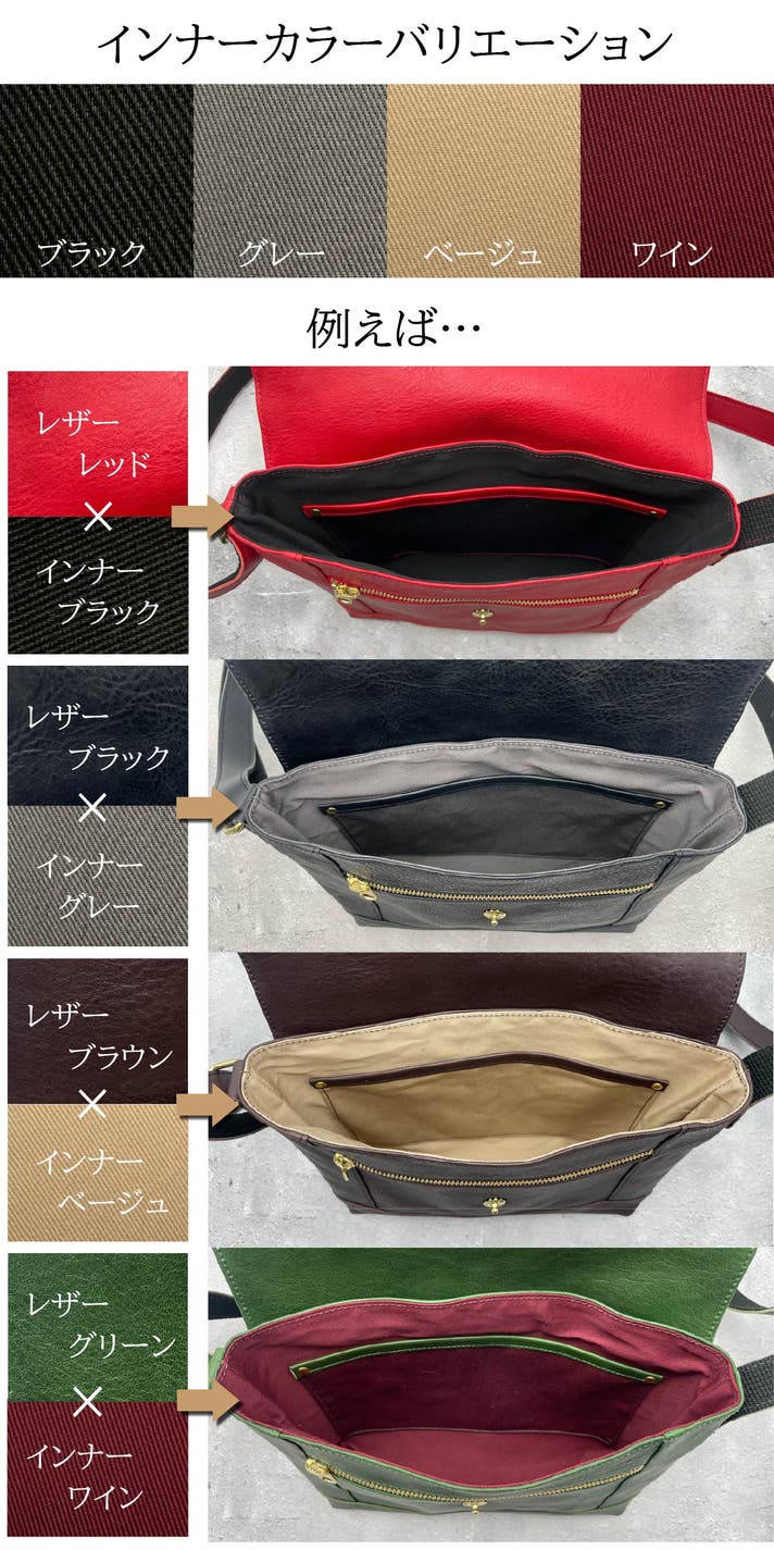 ■インナーカラー:ブラック、グレー、ベージュ、ワインからお好きなカラーをお選びください。