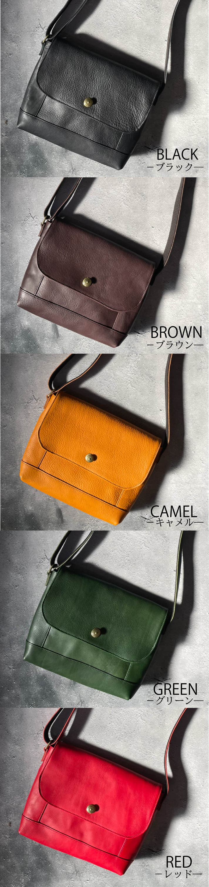 ■革カラー:ブラック、ブラウン、キャメル、グリーン、レッドからお好きなカラーをお選びください。