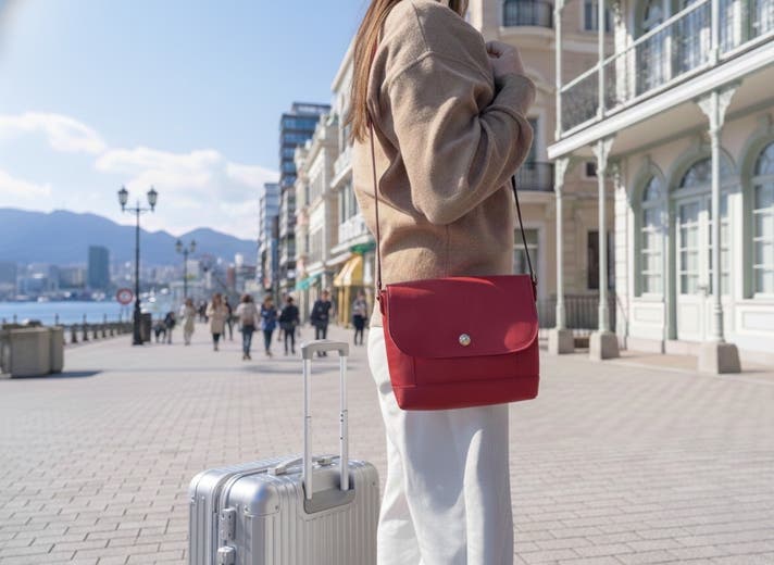 旅行中のサブバッグとして、パスポートやチケットもサッと取り出せる。