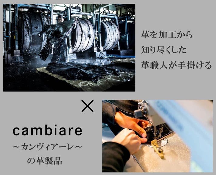 そんな『革づくりの町』から生まれた、cambiare~カンヴィアーレ~の製品企画から制作まで全て担うのは、革をつくる工程を経験した革を熟知した職人です。