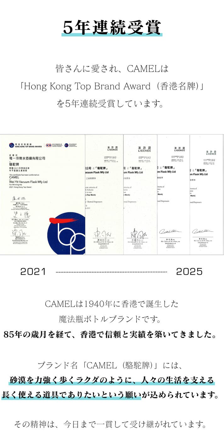 「CAMEL」ブランドを製造する Wei Yit Vacuum Flask Manufactory Ltd. は、1940年に香港で設立された真空フラスク専門メーカーです。