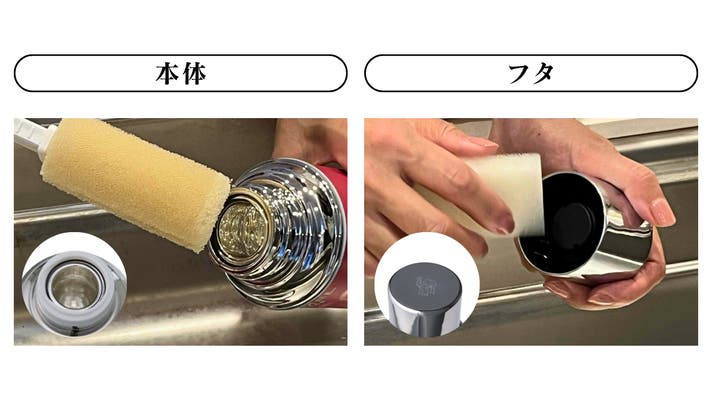 内側:食器用中性洗剤とやわらかいスポンジで軽く手洗い→よくすすぎ、自然乾燥