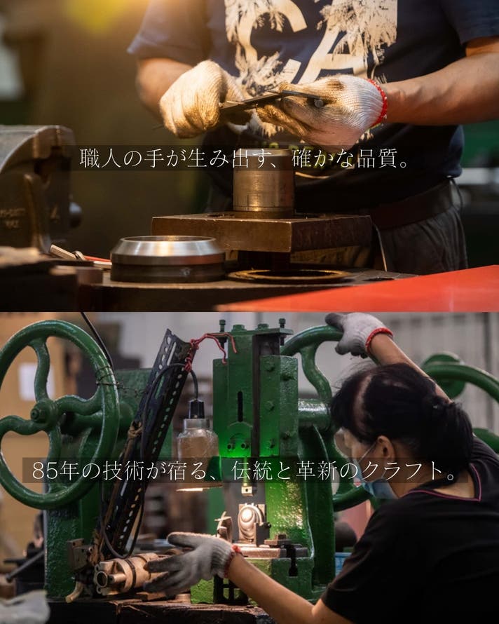 また、かつて稼働していた自社工場はリノベーションされ、現在はホテルとして生まれ変わり、ブランドの歴史も体感できる場となっています。現在も香港の工場では少量生産が続けられており、金型による成形・塗装・組み立てを一つひとつ手作業で仕上げ、外部に委託しない品質管理のもと、長年培われたロングセラー品質を守り続けています。