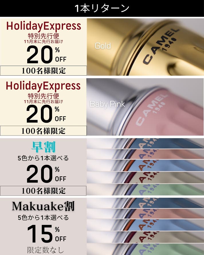 【Makuake割】5色から選べる CAMEL 122 ×1本 《15%OFF》