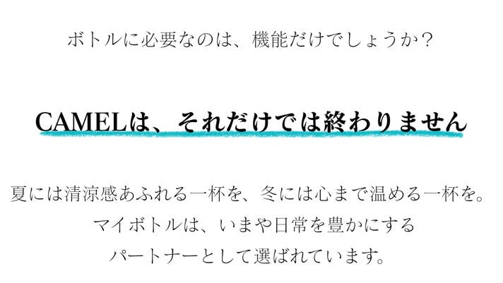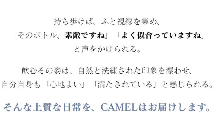 - 日常を彩るマイボトル。美しさと機能を兼ね備えた「CAMEL」、*日本で初めて正規販売。