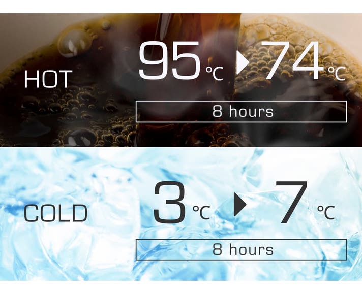 ※保温試験は23℃±2℃の環境下で実施されました。(自社検証)
