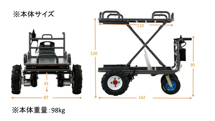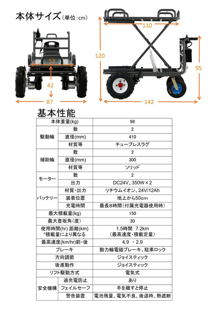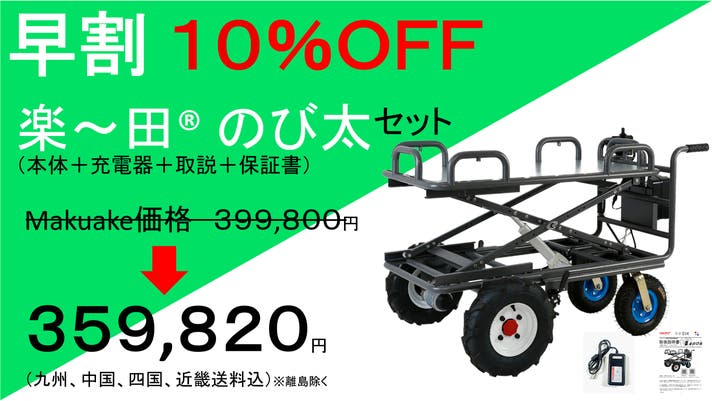 リフト型電動運搬車「楽ー田 のび太」セット 1台(本体+充電器+取扱説明書+保証書)