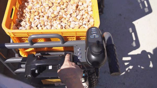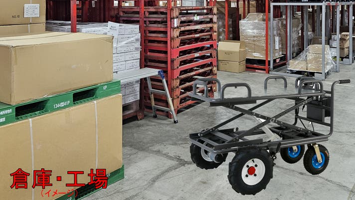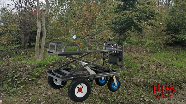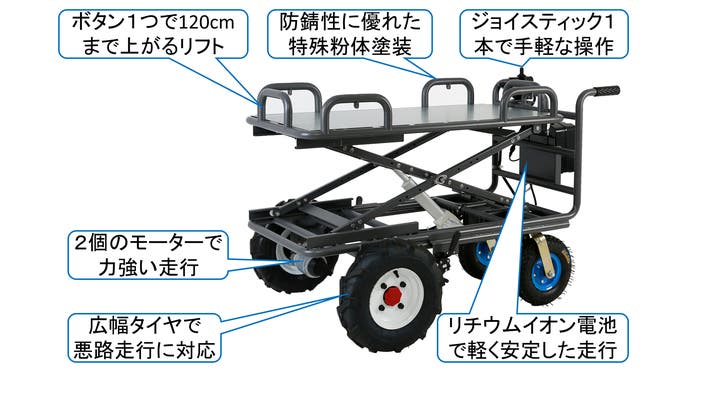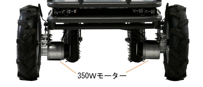 - 計700Wの高出力モーター。ジョイスティックで150kgを指先一つで運搬!荒れた斜面も軽々走行