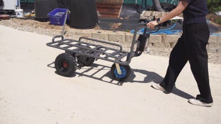 重い荷物を水平に移動させる台車は世に多くあります。でも、人力では50kgの荷物を移動できるのが限界であるうえ、舗装された道路でしか動かせない機種が多いのが現状です。