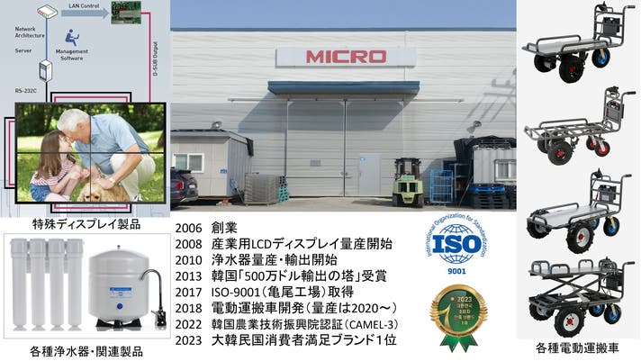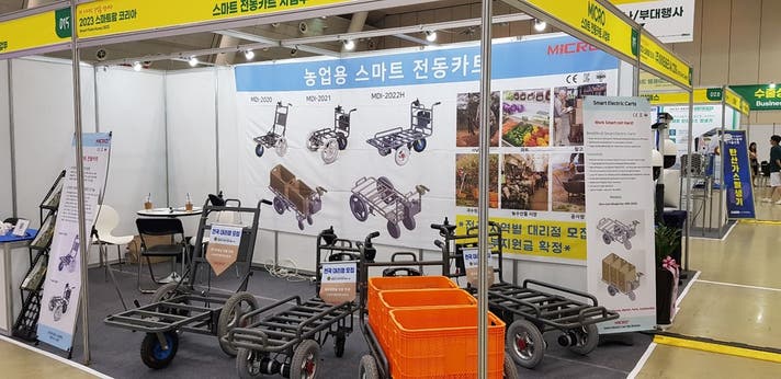 「楽~田®のび太」を製造するのは、韓国京畿道富川市に本社がある『Micro Display Inc.』。2006年に創業以来、主に特殊ディスプレイ製品や浄水器・関連製品を中心に製造や輸出をしてきましたが、2020年より「便利かつ効率的で作業者の健康を保護できる電動運搬車」の開発・製造・販売も行っています。
